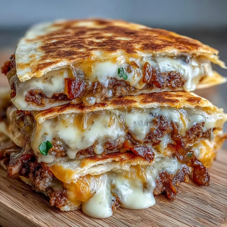 I made these for a small birthday gathering last spring, and they vanished before the cake even came out. My friend who claims she doesn't eat beef had two slices and asked for the recipe on the spot. There's something about the way the tortilla crisps up against the griddle, trapping all that melted cheese and beefy goodness inside, that makes people forget their usual preferences.