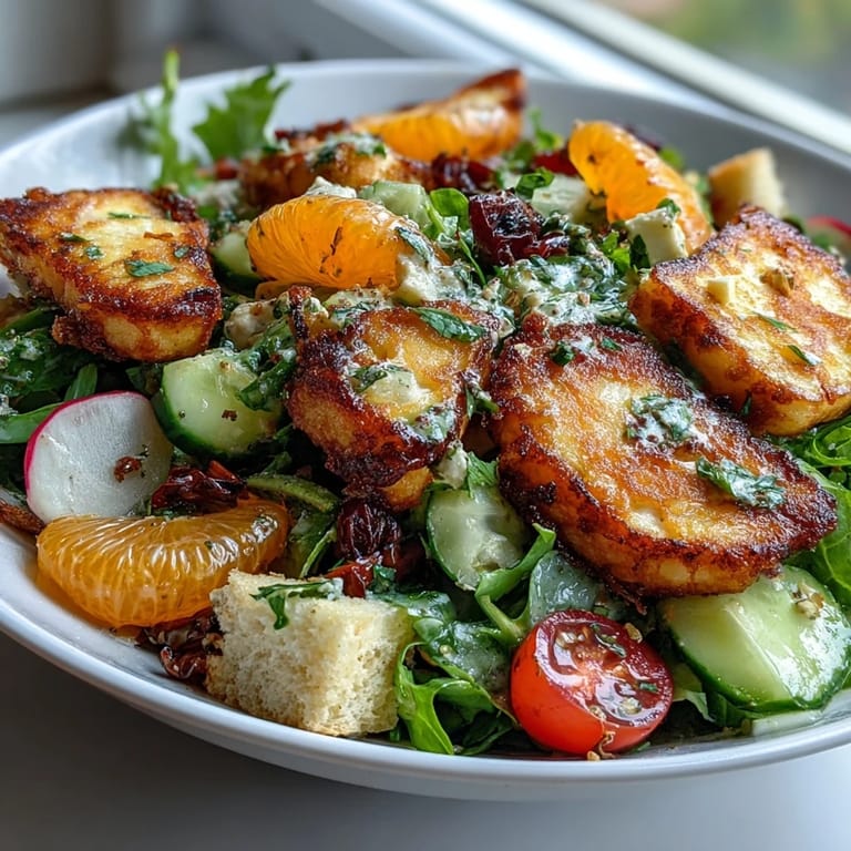 Save A friend brought blood oranges to a dinner I was hosting, and I stood at the kitchen counter mesmerized by their deep crimson flesh as I segmented them. The tartness was so different from regular oranges, and I knew immediately they belonged in something bold. That evening, I paired them with halloumi I'd bought on impulse, and the warm salty cheese against the bright citrus created this moment where everything just clicked. Fattoush was already in my repertoire, but this felt like a discovery, like I'd finally understood what the salad could become.