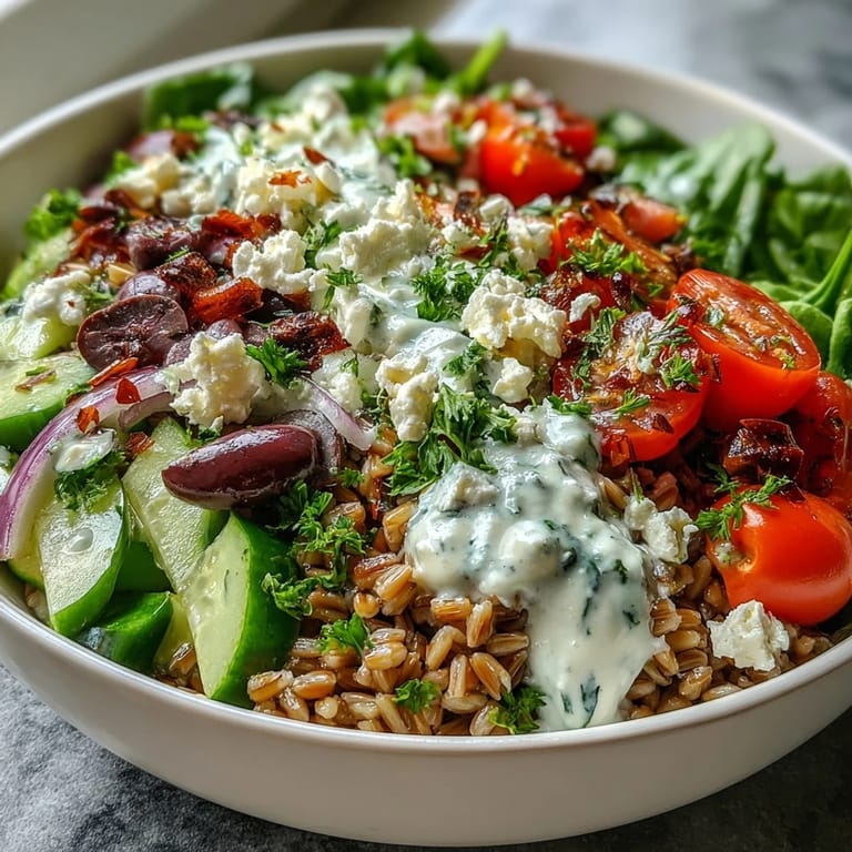 Save I discovered farro bowls during a surprisingly quiet Tuesday afternoon when my neighbor brought over a container of this vibrant mix after returning from a Mediterranean cooking class. One bite and I was hooked—the chewy farro had this nutty, almost comforting quality that made the fresh vegetables feel less like a side and more like the main event. What struck me most was how the tahini dressing somehow tied everything together without feeling heavy, even though it's creamy and rich. Now I find myself making it constantly, sometimes on lazy Sundays when I want something nourishing without much fuss.
