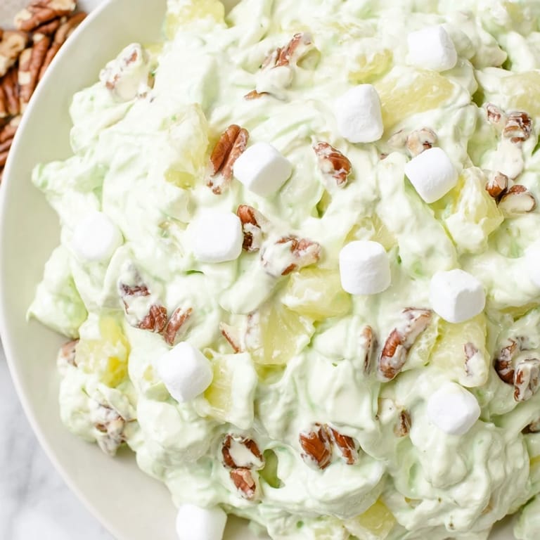 If you want to dial back the sweetness, swap the regular whipped topping for a light or sugar-free version and use sugar-free pudding mix. For extra tropical flair, stir in half a cup of shredded coconut along with the marshmallows—it adds a chewy sweetness that plays beautifully with the pineapple. Some folks replace the pecans with walnuts or slivered almonds, and Ive even seen versions with diced fresh strawberries folded in at the end for a pop of color and tartness.